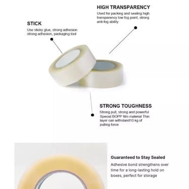 Discover the ultimate solution for your packaging needs with our high-performance Packing Tape! This premium quality tape boasts exceptional transparency and a low fog point, ensuring your packages remain professional and clear. Engineered to handle demanding tasks, it offers impressive pull strength and can endure up to 10 kg of pulling force with ease. The strong adhesive glue guarantees a secure seal, making it an indispensable tool for any packaging scenario. Available in multiple sizes and colors to suit your specific requirements, our Packing Tape is your go-to choice for reliability and strength in every package.